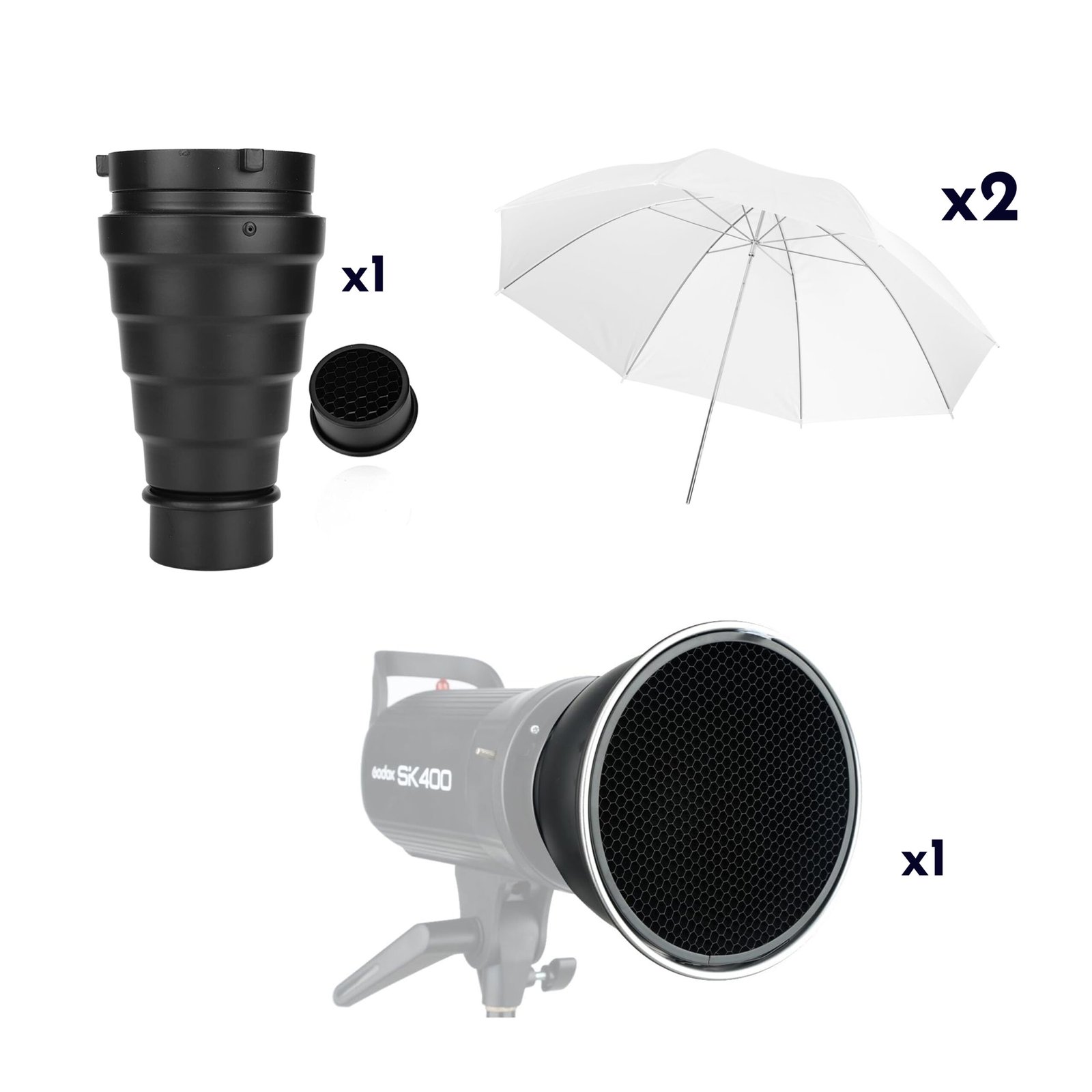 Bowens modifiers (snood, umbrellas etc)