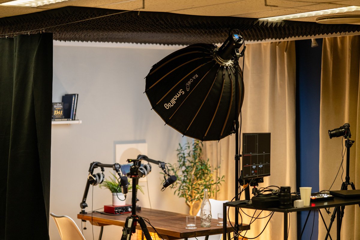 - Podcast-opsætning : brug vores podcasthjørne som det perfekte lærred til at optage dine billeder og videoer, som er inkluderet i vores standardstudiepris (uden brug af podcastudstyr, som er en del af vores podcastpriser, som du finder her)